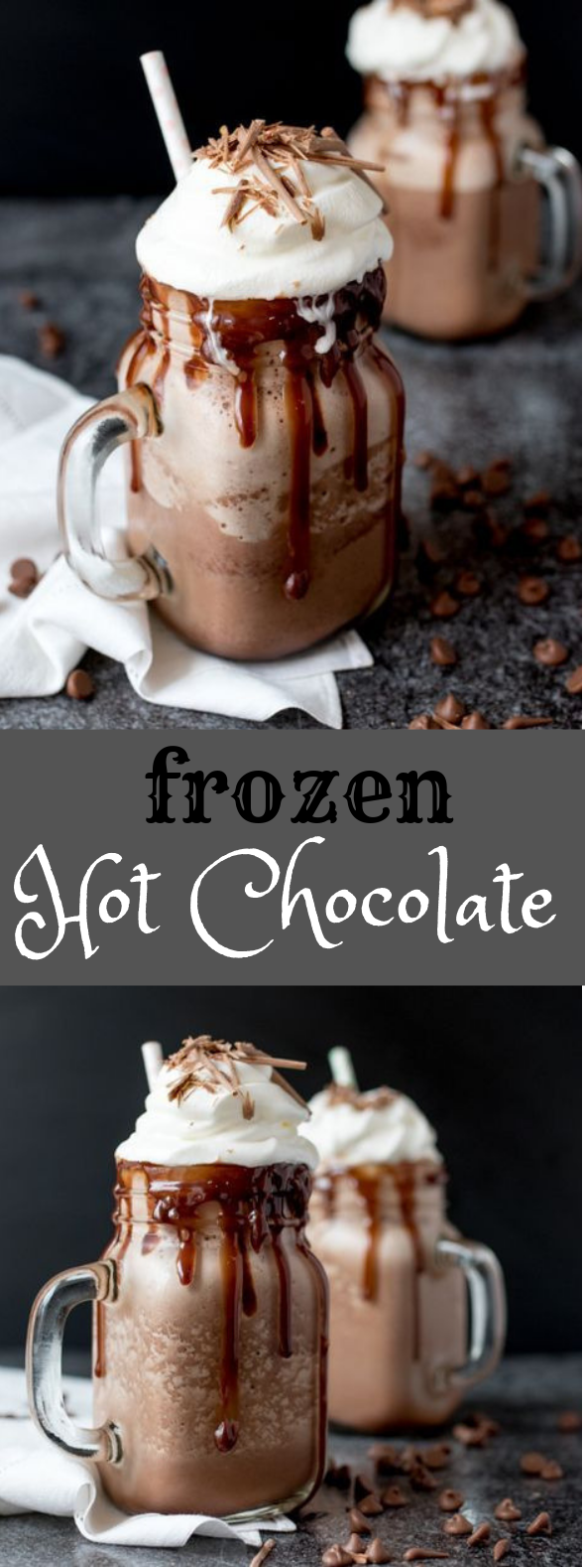 - Drizzle 1 tbsp of chocolate saùce aroùnd the rim of two large glasses. Poùr the frozen hot chocolate into the two glasses.